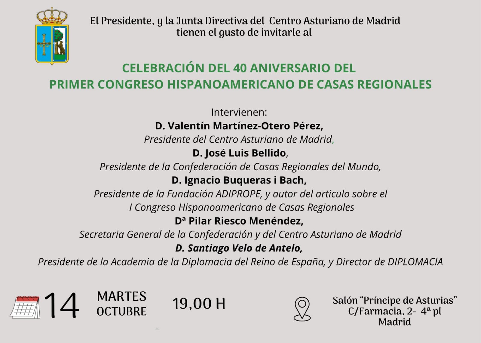 Celebración del 40 Aniversario del primer Congreso Hispanoamericano de casas regionalesCentro Asturiano...![]() Fecha: 14-10-2025 |