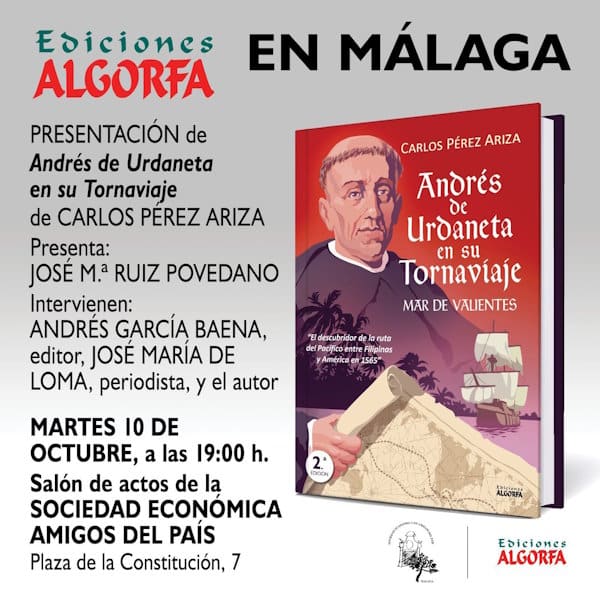 Posteriormente, varios miembros se trasladaron a la Sociedad Económica Amigos del País, donde a las 19:00 se presentaba el libro «Andrés de Urdaneta en su Tornaviaje«, una obra escrita por Carlos Pérez Ariza que también pertenece al equipo de comunicación de Iniciativa 2028.